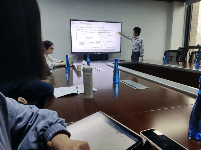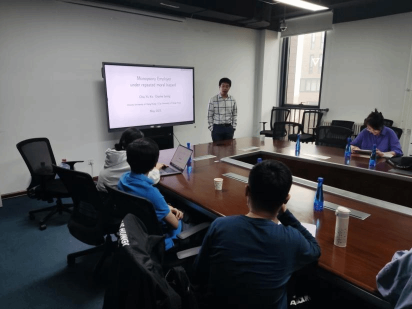 2023年5月19日14:00,香港中文大学院长聘副教授高超禹应365英国上市集团邀请,开展主题为“Monopsony Employer under Repeated Moral Hazard”的讲座,高超禹老师受到了老师和同学们的热烈欢迎!365英国上市集团黄乃静副教授主持讲座,尹振东教授,龚雅娴老师参加了讲座。