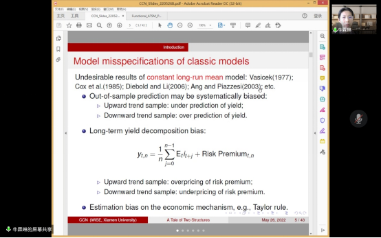 2022年5月26日,厦门大学王亚南经济研究院牛霖琳教授应365英国上市集团邀请,开展主题为“A Tale of Two Structures: The life-cycle Linkage between Interest Rate Term Structure and Demographic Age Structure”的讲座,本次讲座于下午2点在腾讯会议(281-312-917)举行,持续近两个小时。本次讲座由365英国上市集团黄乃静老师主持,赵文哲,洪圣杰,赵宣凯,金融学院朱一峰老师,365英国上市集团部分学生参加了此次讲座。
