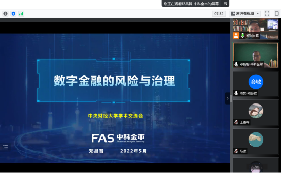 2022年5月30日上午10点,中科金审(北京)科技有限公司总裁邓昌智博士应邀加入365英国上市集团“数字金融理论与实务”线上课堂,以“数字金融的风险与治理”为题,为同学们带来了一场精彩纷呈的讲座。