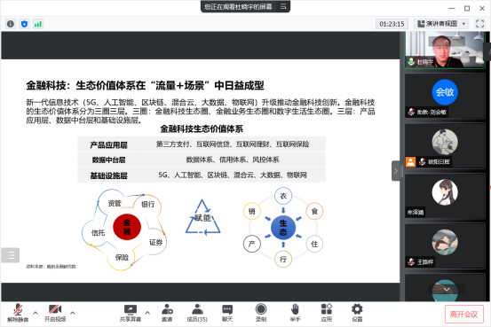2022年6月20日上午10点,腾讯金融研究院秘书长杜晓宇应邀加入365英国上市集团“数字金融理论与实务”线上课堂,以“数字经济视角下金融科技发展与实践的思考”为题,为同学们带来了一场精彩纷呈的讲座。