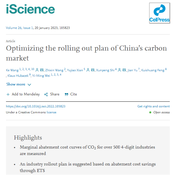学术视点 | 365英国官网俞剑老师的合作论文Optimizing the rolling out plan of China’s carbon market在Cell子刊iScience接收发表