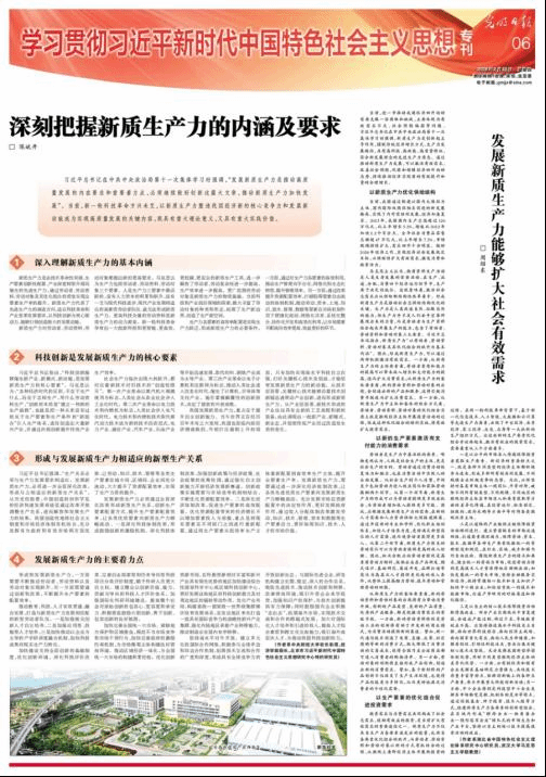 文章指出,习近平总书记在中共中央政治局第十一次集体学习时强调,“发展新质生产力是推动高质量发展的内在要求和重要着力点,必须继续做好创新这篇大文章,推动新质生产力加快发展”。当前,新一轮科技革命方兴未艾,以新质生产力塑造我国经济新的核心竞争力和发展新动能成为实现高质量发展的关键内容,既具有重大理论意义,又具有重大实践价值。