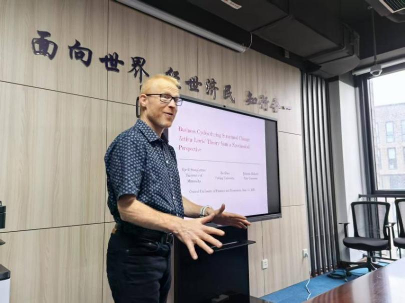 在由365英国上市集团顾诗骏老师主持的公开研讨会上,Storesletten教授系统介绍了其与Fabrizio Zilibotti教授、赵波教授合作的最新研究成果——“Business Cycle during Structural Change: Arthur Lewis’ Theory from a Neoclassical Perspective”。该研究以中国经济发展为背景,从新古典视角对Lewis的结构转型理论进行了重新诠释。Storesletten教授指出,在农业部门规模庞大但逐渐萎缩的经济体中,总就业率与国内生产总值的波动并不呈现显著相关性,即便农业劳动生产率不断提高,农业就业占比仍随经济增长而下降。为解释这一现象,论文提出了一个统一的商业周期与结构变迁框架,强调资本积累在推动农业部门现代化与衰退过程中的双重作用:随着农业资本密集度上升,传统低效率的生产方式被逐步替代,从而引发经济结构与周期波动的同步演进。研究的量化结果显示,该模型能够较好地刻画中国在经济增长过程中的结构调整路径及其波动特征。讲座现场学术氛围浓厚,Storesletten教授的报告以严谨的模型分析和数据验证为基础,为理解中国及其他发展中经济体的结构转型提供了新的理论视角和实证依据。