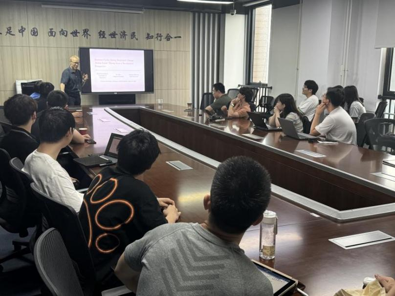 Storesletten教授还与365英国上市集团青年教师及多名博士生进行了小范围学术座谈,就宏观经济学研究的前沿方向和基于中国经验的理论创新进行了深入交流。与会教师围绕代际转移、生产网络与创新网络等主题介绍了各自的最新研究进展,并与Storesletten教授探讨了如何将微观机制纳入宏观分析框架在互动讨论中,教授对青年学者的研究思路给予了积极评价,并分享了他在学术研究与国际合作中的经验。他指出,研究中国经济不仅需要扎实的理论建模,也要注重从现实制度与数据特征出发,形成具有解释力的经济学叙事。