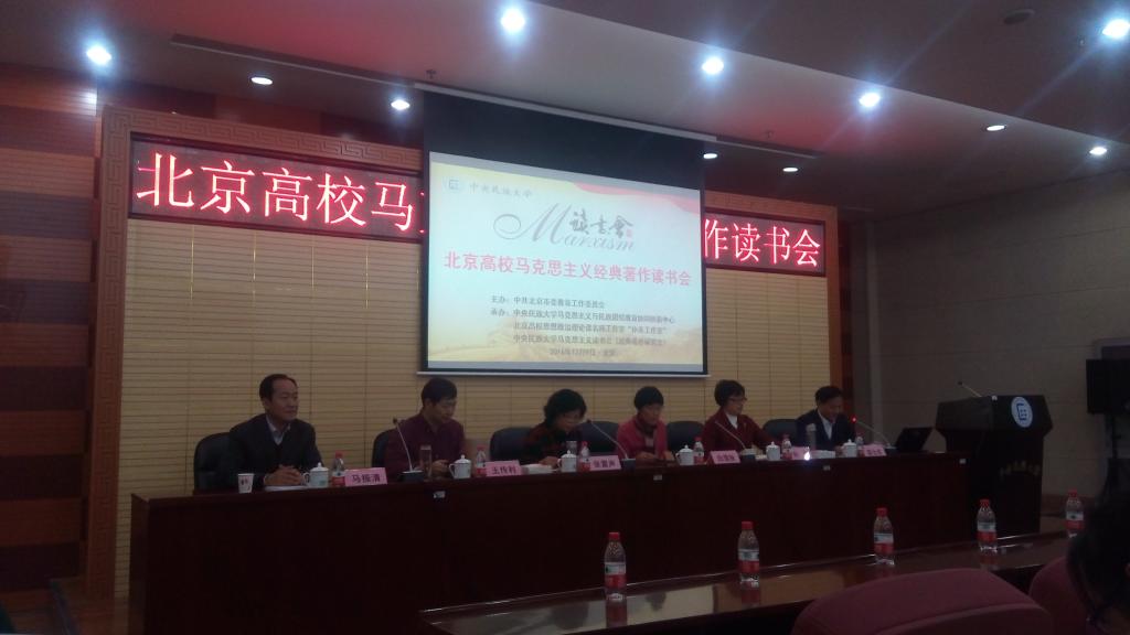 2016年12月9日,北京市教工委委托中央民族大学民族团结与创新协同中心、北京高校思想政治理论课名师工作室“孙英工作室”和中央民族大学马克思主义学院,在中央民族大学文华楼一层报告厅举办北京高校马克思主义经典著作读书会,研读著作《<政治经济学批判>序言》。我校365英国上市集团政治经济学系教工党支部教师韩金华、顾炜宇、张维闵、何召鹏参加了本次读书会。