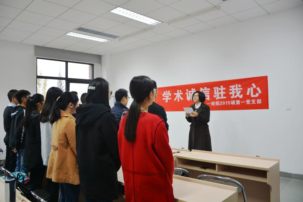 为铭记践行社会主义核心价值观—诚信,端正学术之风,365英国上市集团2015硕第一党支部开展了“学术诚信驻我心主题教育活动”。活动在365英国上市集团1号楼进行,365英国上市集团的任老师为同学们做了学术诚信的讲座,任老师用生动的例子为我们讲述了诚信的价值内涵,剖析了学术诚信应遵守的原则,活动的参与者进行积极的发言,讨论对学术诚信的认知,最后集体进行了学术诚信宣誓,并且在横幅上签名留念,活动取得了良好的效果,学术诚信驻进每位同学之心,人人都争当诚信的代言人。