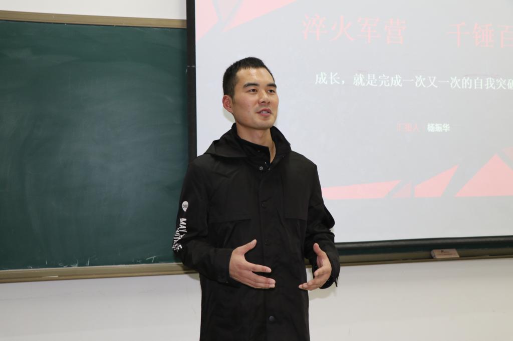 分享会上,杨振华首先介绍了自己在部队的成长经历,应征入伍后,他被编入中国人民解放军东部战区陆军第一集团军,在一线作战部队服役。新兵连期间,因表现突出,各项考核全部通过,获得优秀新兵称号。下连队之后被编入装甲步兵分队,成为了一名装甲兵,学习了通信和驾驶专业,第二年转岗至两栖侦察兵,在连队各项训练和工作中表现突出,得到了连首长的认可,连续两次被连队评为“优秀士兵”。杨振华还特别提到在服役期间,张志敏老师和任晶老师代表学院到部队去探望,给了自己莫大的鼓励和动力,十分感谢学院的关心和支持。而后分享了自己在部队的所思所悟和收获,鼓励学弟学妹们脚踏实地,培养“见第一就争,见红旗就扛”的争先意识,以时不我待的姿态发奋学习,努力提高自身能力。最后,他结合自己的入伍经历,谈到了大学生党员的责任与担当。通过尖兵意识、忧患意识、自律意识、担当意识、纪律意识和吃苦意识等“六个意识”展现了部队优秀共产党员的优秀品质,他鼓励同学们要树立正确的价值观,真正了解中国共产党的初心和使命,领会一名共产党员应有的责任和担当。老实做人,踏实做事,严格要求,做对社会有益的人,将创造更多的社会价值作为自己的奋斗目标。