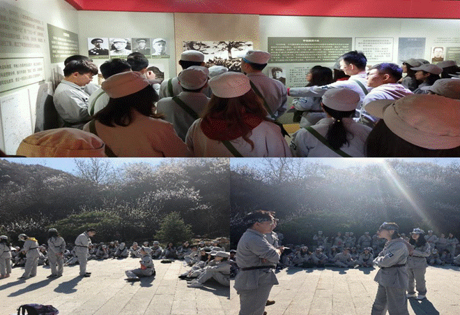 抵达目的后,在引导员的带领下大家换好八路军军装、军挎和步枪,整队前行——烈日中步行1.5公里,亲身体验了革命先烈曾经走过的长征路,最后到达英雄广场。在解说员的讲解下,大家对革命烈士的光辉事迹有了更深的了解,并怀着崇高的敬意和感激,向诸位烈士脱帽致敬。随后,我们一行人坐车前往霹破石村,参观昌延联合县政府遗址,重温入党誓词,这让大家更加牢记作为一名党员必须坚守的使命。