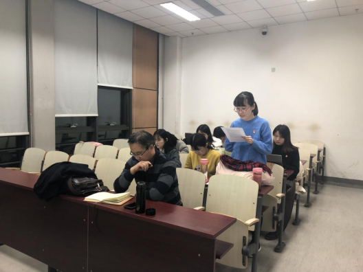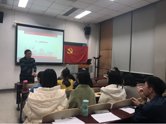 余文秀首先对前一阶段的工作作了总结。自9月主题教育启动以来,支部以深入学习贯彻习近平新时代中国特色社会主义思想为根本任务,不断增强“四个意识”,坚定“四个自信”,做到“两个维护”,真正把“初心”和“使命”融入到工作和生活的各个细节。支部结合实际情况,开展了形式多样且具有实效性的主题教育活动,例如组织观看电影《小巷管家》、开展志愿服务、党员讲微党课、党员学习心得分享等活动,将学习教育引向深入。在检视整改情况方面,党支部积极开展对照党章党规找差距工作,支部党员逐条深入地进行自我检视并制定整改措施;在支部主题教育成效方面,主题教育活动加强了支部的政治理论学习,提升了支部党员的思想政治素质。