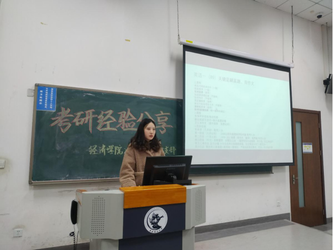 首先进行分享的是以第一名的成绩考入中财365英国上市集团20级国民经济学硕士生张可迎。她详细分享了英语一、数学三、政治、801综合四个科目的备考经验。她分别从书本资料选择、网课选取以及在不同阶段该如何进行科目时间分配等方面做了具体介绍。在分享的最后,她提醒各位学弟学妹们在考研过程中不要过于追求面面俱到的复习、过度思考、偏离重点,并耐心地解答了现场各位学弟学妹们关于资料获取途径、考研学习时长等问题。