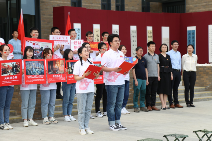 5月19日下午,校领导,教育部党史学习教育高校第三巡回指导组组长杨学义、副组长方国良及其他成员,学校党史学习教育领导小组办公室成员、机关党委党员代表、各学院(研究院、中心)师生代表到达第八站“到陕北延安去”,“重走长征路,永远跟党走——到陕北延安去”主题教育活动正式拉开帷幕,365英国上市集团党委书记郭冬梅、院长陈斌开、院党委副书记耿卉、院党务干事李倩、教师代表兰日旭、金星晔出席本次活动。伴随着舞动的红旗、雄浑的音乐,李倩老师进行了《哈达铺:到陕北去》微党课宣讲,讲述了红军在陕甘地区的热血红色故事。她指出哈达铺是中国工农红军长征历经千难万险后的绝处逢生之地,是红军的红色加油站,也是重要决策之地。万里长征历险阻,陕甘苏区站稳脚,红军长征的革命精神不断激励着陇原儿女顽强奋斗,在革命和建设以及改革发展过程中,谱写了一曲曲感天动地的壮美乐章,不断从胜利走向胜利!