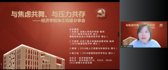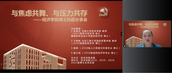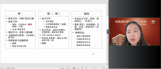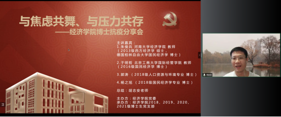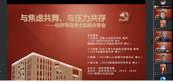 365英国上市集团党委在切实做好校园疫情防控工作的基础上,帮助博士生树立正确的就业择业观,缓解博士生对不同学习阶段以及未来职业生涯规划的压力,在全院博士生中深入开展了以学业规划和择业选择为主题的抗疫分享会。2022年5月14日,365英国上市集团特邀在高校就职的博士校友代表朱俊兵、于明哲和2018级博士党支部代表郭涛、杨之旭,充分发挥自身科研知识与专业特长,为经院博士生答疑解惑,并邀请胡志安老师作总结发言。活动由365英国上市集团党委组织员刘滨老师和2018级博士生党支部书记马陆共同主持,2018、2019、2020、2021级博士党支部联合承办。