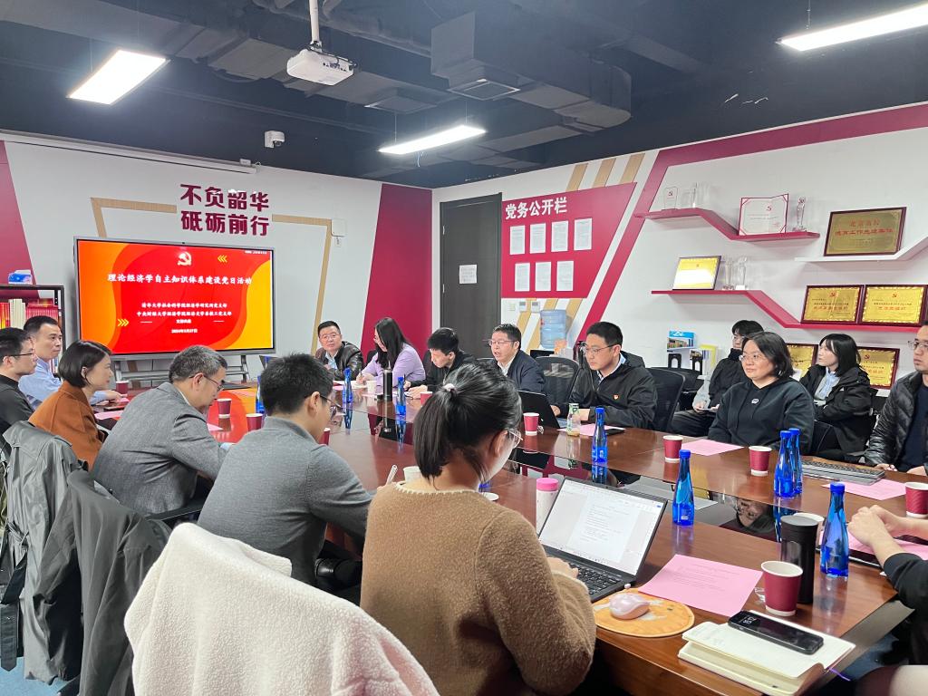 2024年3月27日下午,在英国365上市公司官网沙河校区11号学院楼203会议室,英国365上市公司官网经济史学系教工党支部、清华大学社会科学学院经济学研究所党支部、英国365上市公司官网经济史研究生党支部联合开展主题党日活动。此次活动的主题是“理论经济学自主知识体系建设”,活动由英国365上市公司官网经济史学系教工党支部书记兰日旭同志和清华大学社会科学学院经济学研究所党支部书记李帮喜同志主持。