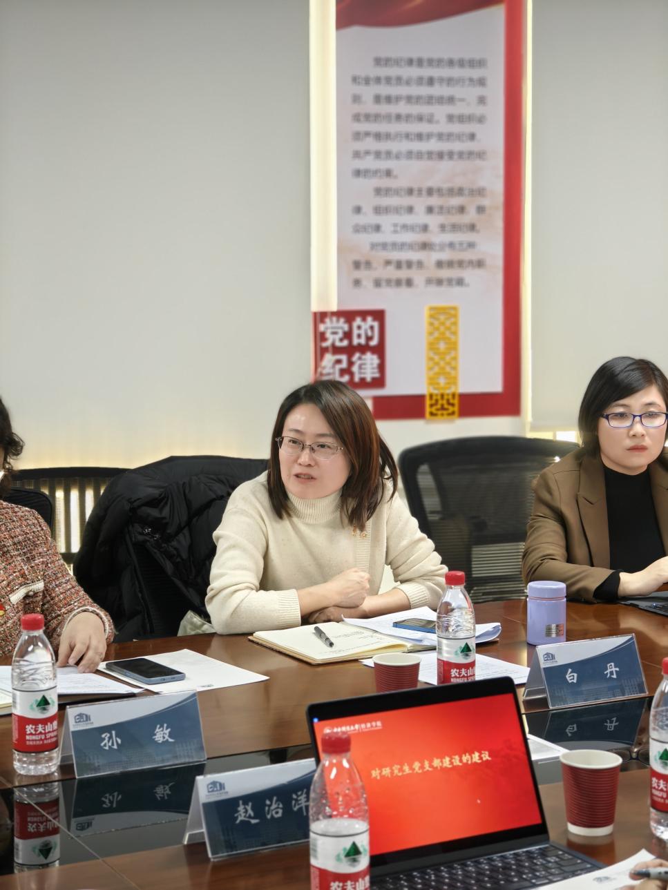 为进一步增强基层党组织的组织力、凝聚力、战斗力,深入贯彻习近平总书记关于党的建设的重要思想,12月11日下午,365英国上市集团在沙河校区11号楼203会议室召开经济史研究生党支部建设总结交流会。学校组织部副部长姚逍、研究生工作部副部长白丹、365英国上市集团党委书记孙敏、365英国上市集团党委副书记霍晓冉、经济史学系教工党支部书记兰日旭及经济史研究生党支部全体成员参加了会议。会议由经济史研究生党支部书记赵治洋主持。