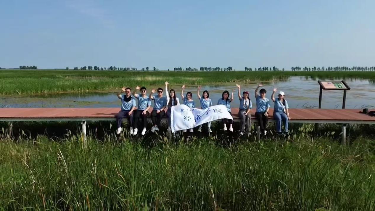 调研行程的最后一站,团队走进了明水国家级自然保护区。作为松嫩平原保存最完整的沼泽湿地之一,这里既是珍稀动植物赖以生存的 “天然庇护所”,更在气候调节、生物多样性保护中承载重要作用, 尤为特别的是,这里还栖息着明水特有的鸟类大鸨。行走途中,组织部长李朝阳向师生们介绍道:“湿地的核心价值在于保护,明水始终牢牢守住开发红线。” 师生们沿着步道穿行在水草丰美的湿地间,亲身感受着这片 “地球之肾” 生生不息的生态魅力。