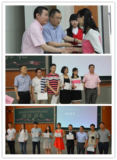 接下来,典礼进入最激动人心的颁奖环节。2016年东方金诚信用服务奖励基金共设置57个奖励名额,其中“东方金诚信用菁英教师奖”7名、“东方金诚信用奖学金”52名。由罗光董事长、李涛院长为兰日旭、韩旭明、于爱芝、邹燕等4位获奖教师代表颁奖;由李彬副院长、俞春江总监为原志听、王靖雯、方明、袁雪峥、樊妍如、徐笑森、尺列欧珠等7位获奖同学代表颁奖。