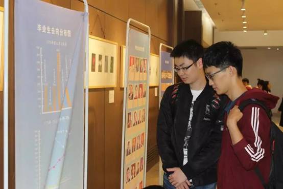 讲解期间,作为新生,更加关注于自身的发展,因而同学们纷纷停留在了师资力量、交流项目等展板前,久久凝视。