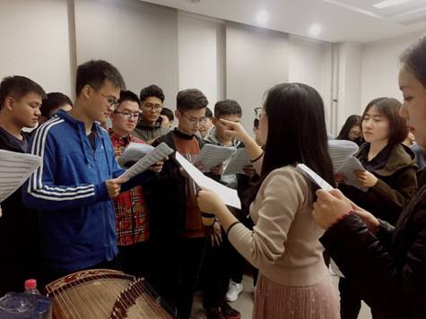 为准备这次合唱比赛,同学们进行了两个星期的准备,从最开始的选歌,改编歌词,准备动作到最终的排练并且完成演出,离不开每一位同学的付出和本科生刘博学妹的全程热情指导。课后,同学们拿出了自己学习和娱乐的时间,进行了一次又一次的反复合唱练习,纠正每一个发音的细节问题。