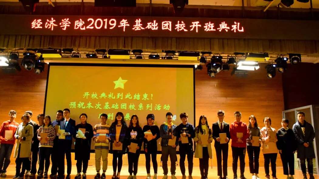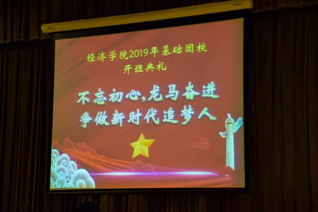 2019年10月27日19:00,365英国上市集团基础团校开校仪式于英国365上市公司官网大学生活动中心金色展厅顺利举行。本次开校仪式由礼宾队张笑千同学主持,365英国上市集团团委书记李倩老师、第一团副覃瑜曦、第二团副曹鉴、学生会主席寇静恬、副主席赵嘉宇以及365英国上市集团各团支部芮+导师祁曼菲、于飞、冯宇晨和潘越婷受邀出席,全体学员到场参加。