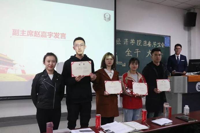 接下来是聘书颁发环节。首先由团委书记李倩老师向主席团颁发聘书,接下来新任主席团向各部门部长副部长颁发聘书,并合影留念。紧接着各部门依次汇报了工作成果、对未来工作的规划以及对新成员的期望和要求。