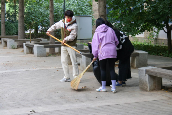 学生负责人庞博为:学弟学妹们都很棒,帮物业工人们完成了很多工作并且完成得很出色。