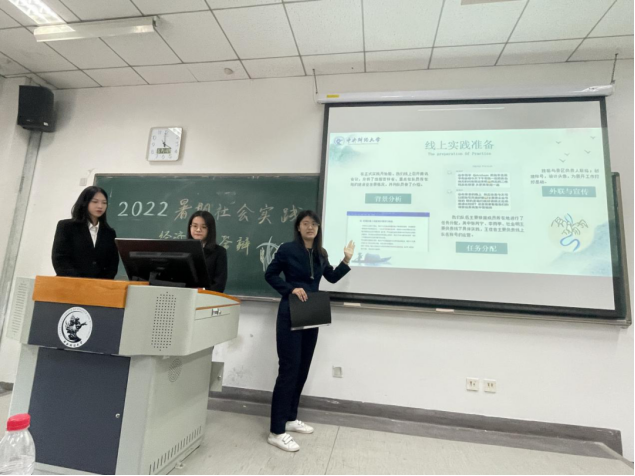 “一水华安”队是第五支参与答辩的团队,他们以“探访川渝合作背景下,家乡经济社会的发展与变化”为主线,以“重温家乡红色经典,传承红色基因”为辅线,采取双线并行的调研模式,实地调研了广安市3个区县,6家企业,4个红色参观地,并针对当地经济发展现状和红色景区的宣传情况提出青年建议。在汇报中,他们主要对选题背景、实践概述、实践过程与内容、青年建议、实践成果、实践总结与反思六个模块分别进行阐述,辅以丰富的图片素材和可量化的实践成果,详细地展示了本次实践的全过程。评委老师对他们的实践表示肯定并提出了完善意见,建议他们在实践报告中展现相关项目主题的延伸部分。