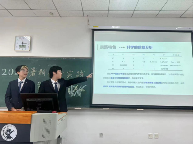 立足于国家以及吉林省大力发展乡村旅游行业、助力乡村振兴的大背景,“杞梓之林,吉星照之”队详细展示了暑期为期一月余的调研过程与成果,利用问卷调查、案例分析、数据分析的方式,总结乡村旅游特点、当今行业的不足与优秀案例,并提出建议。评委老师称赞了他们工作内容的丰富与细致,建议他们将吉林省的行业现状与辽宁、黑龙江省进行进一步对比;在进行选址时可以选择更有吉林特色的乡村旅游景点,做独特的分析,并落实到农民增收上;对游客进行画像时可以进行更精细的人群背景调查;将南方旅游业的先进经验纳入考量。