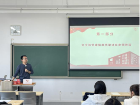 会上,党支部党建指导员梁延东老师感谢了上一届支部成员的努力与付出。接着,他借用《论语》中的“古之学者为己,今之学者为人”,赞扬了支部成员甘于奉献、向内求的精神追求。他说,支部取得的成绩是靠各位成员的情怀和付出支撑起来的,他希望各位支部成员将这份执着保持下去,将温暖传递下去,让温暖成为一种“正循环”。