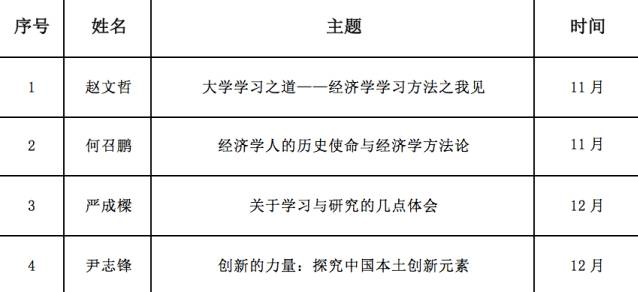 经济学家梦工场| 2017-2018学年第一学期经济学学习辅导与学术讲座活动安排