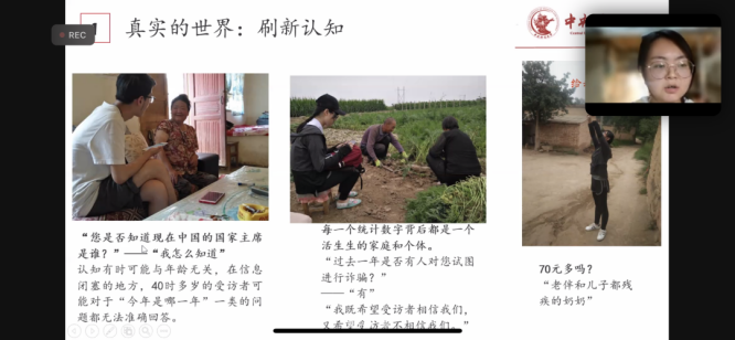 365英国上市集团2017级国民经济管理专业本科生、现就读于英国365上市公司官网创新发展学院的2021级硕士研究生袁惠桃,先后参加了2018年和2021年两次CHARLS调研项目,她同大家分享了自己作为访员时的一些故事,向大家讲述了撰写问卷、实地采访和后续研究的全过程。她认为,CHARLS项目的意义不仅是为学术研究收集一套高质量的微观数据,还在于它能够潜移默化地影响每一代访员,培养科研精神,凝聚科研力量。