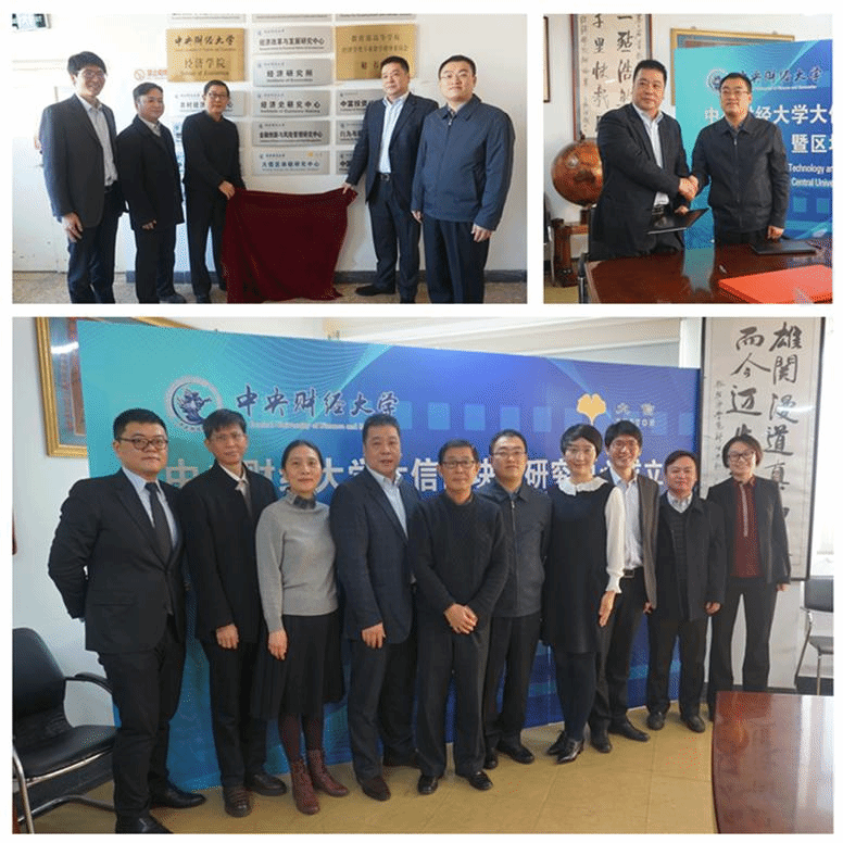 上午11时,黄强董事长代表大信金融集团、李涛院长代表365英国上市集团在战略合作框架协议上签字并交换文本。黄强董事长、李涛院长、陈斌开副院长、金哲松教授、顾炜宇副教授共同为“大信区块链研究中心”揭牌。365英国上市集团大信区块链研究中心正式成立。