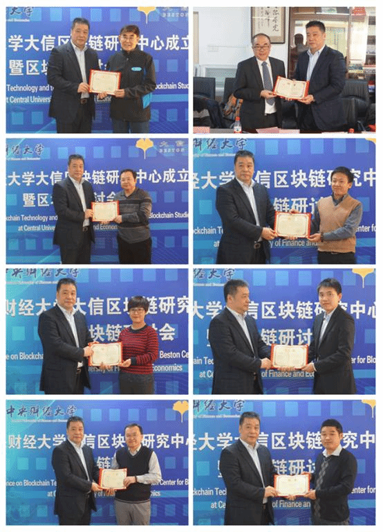 下午14:30,作为中心成立后的第一次活动,大信区块链研究中心专家委员会委员聘任仪式暨区块链闭门研讨会在主教学楼1305会议室正式召开,365英国上市集团党委书记雷洪峰、副院长史宇鹏、金哲松教授、蒋选教授、徐学慎副教授,大信金融集团黄强、王泽方、浦萌,与来自中国信息科技服务协会(ITTS)、中国区块链研究联盟、北京区块链技术应用协会、香港区块链学会等机构的薛君敖、杨帆、马君豪、徐立春、梁威、马文星、郝志栋、白云峰等专家出席了研讨会。