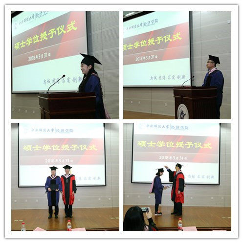 接下来史宇鹏副教授宣读了《关于2017年12月研究生毕业及授予学位的决定》。2017年,365英国上市集团共有179人提交了硕士学位申请,经过资格审核和论文答辩,有87人获得经济学硕士学位。陈斌开副院长为每位学员拨穗和授予学位证书。
