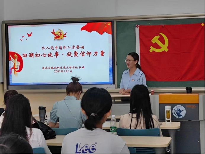 7月1日下午2:30,正逢党的百年华诞,365英国上市集团本科生党支部在学院楼109教室举行了庄严的预备党员入党宣誓暨党史学习教育专题党课活动。365英国上市集团本科生党支部书记任晶老师、2021年6月新发展的45名预备党员与部分正式党员共同参会。