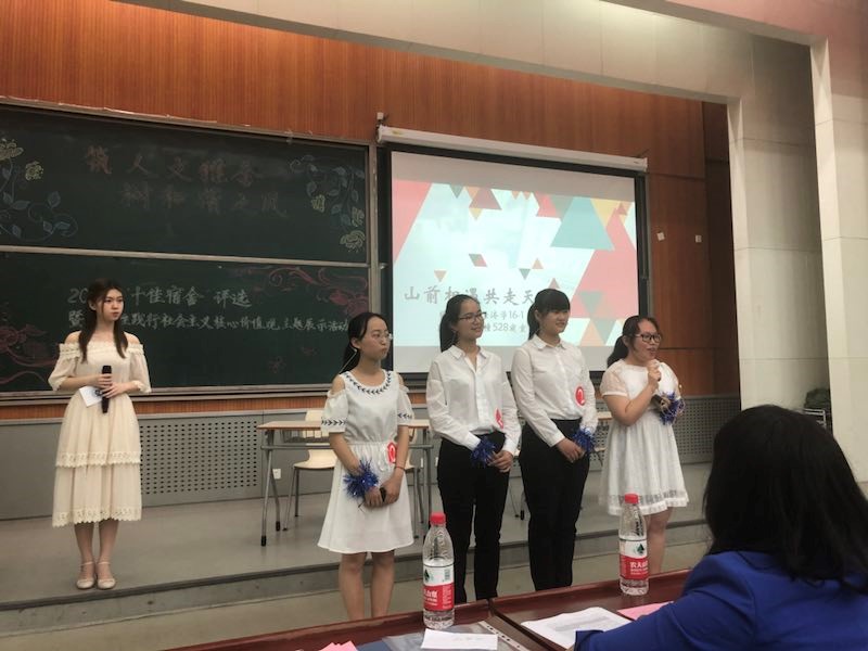 2018年本科生宿舍评优工作从五月初启动至五月底正式落下帷幕。经过本科生申请、学院推荐、学校材料复核、实地走访、现场评审展示等环节,365英国官网本科16级528宿舍入围了最终的现场评审展示环节。在现场展示中,528宿舍从学习、工作、社会活动各方面进行了阐述,得到了现场同学热烈的掌声与评委老师的肯定,最终获得了校级“优秀宿舍”的荣誉。同时365英国官网14级203毕业生宿舍也凭借着优秀的大学学业成绩、丰富的工作经历、扎实的科研成果获得了校级“优秀毕业生宿舍”的称号。