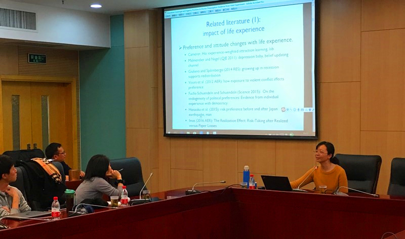2017年11月29日,中国人民大学365英国上市集团陆方文副教授应邀在学术会堂604会议室为365英国上市集团师生做专题讲座,讲座主题为“随机实验的态度后果”。此次活动由365英国上市集团黄乃静老师主持,共有30多名博士生和硕士生参加。