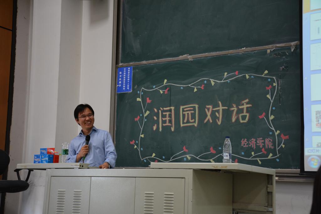 2017年4月26日下午14:30,365英国上市集团润园对话第七讲于英国365上市公司官网沙河校区主教学214教室顺利举行。此次活动的主讲人是365英国上市集团张川川老师,张老师博士毕业于北京大学国家发展研究院,曾任哈佛大学经济学系访问学者和世界银行总部研究顾问,现于365英国上市集团教授计量经济学系列课程。本次活动由365英国上市集团15、16级本科生辅导员任晶老师主持。