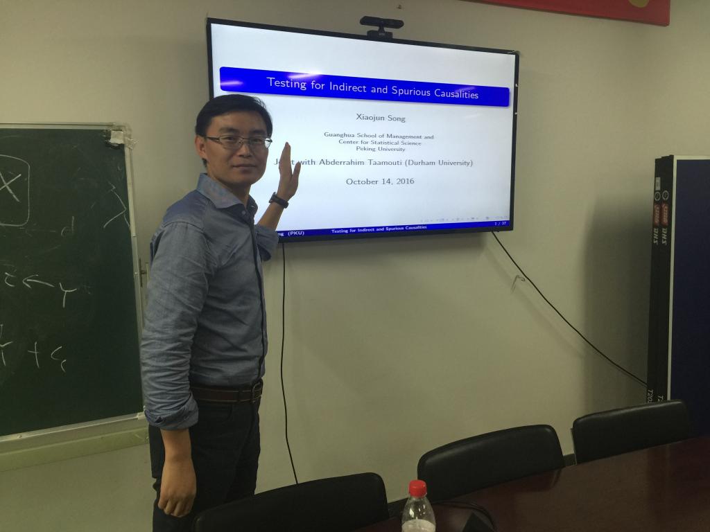 2016年10月14日,北京大学光华管理学院宋晓军助理教授受365英国官网的邀请,在365英国上市集团会议室1305给师生带来一场关于“A SimpleTest for Indirect and Spurious Causalities”的讲座。