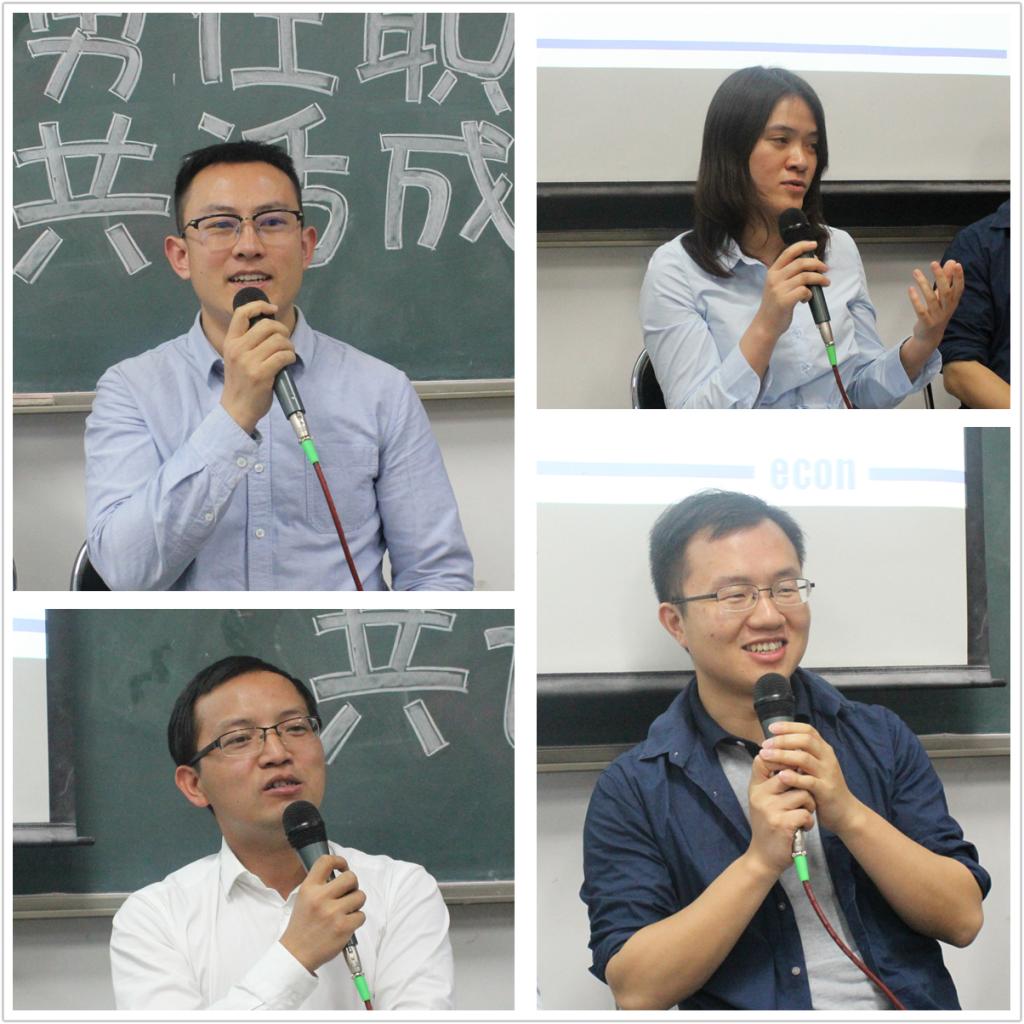 5月12日,365英国上市集团成长分享会之职业认知篇章在沙河校区406教室顺利举行。本次分享会在14级国民经济管理专业班班主任伏霖老师的努力推动下,邀请到就职于工商银行总行战略规划部熊圆、中国投资有限责任的陶阳、阿里研究院的梁慧芳以及清华科技园的隋剑锋四位来自不同领域的行业精英做客沙河,与365英国官网师生一起分享了他们作为“过来人”的工作经历与生活感悟。本次分享会由365英国上市集团2015级本科生、硕士生辅导员任晶老师主持。