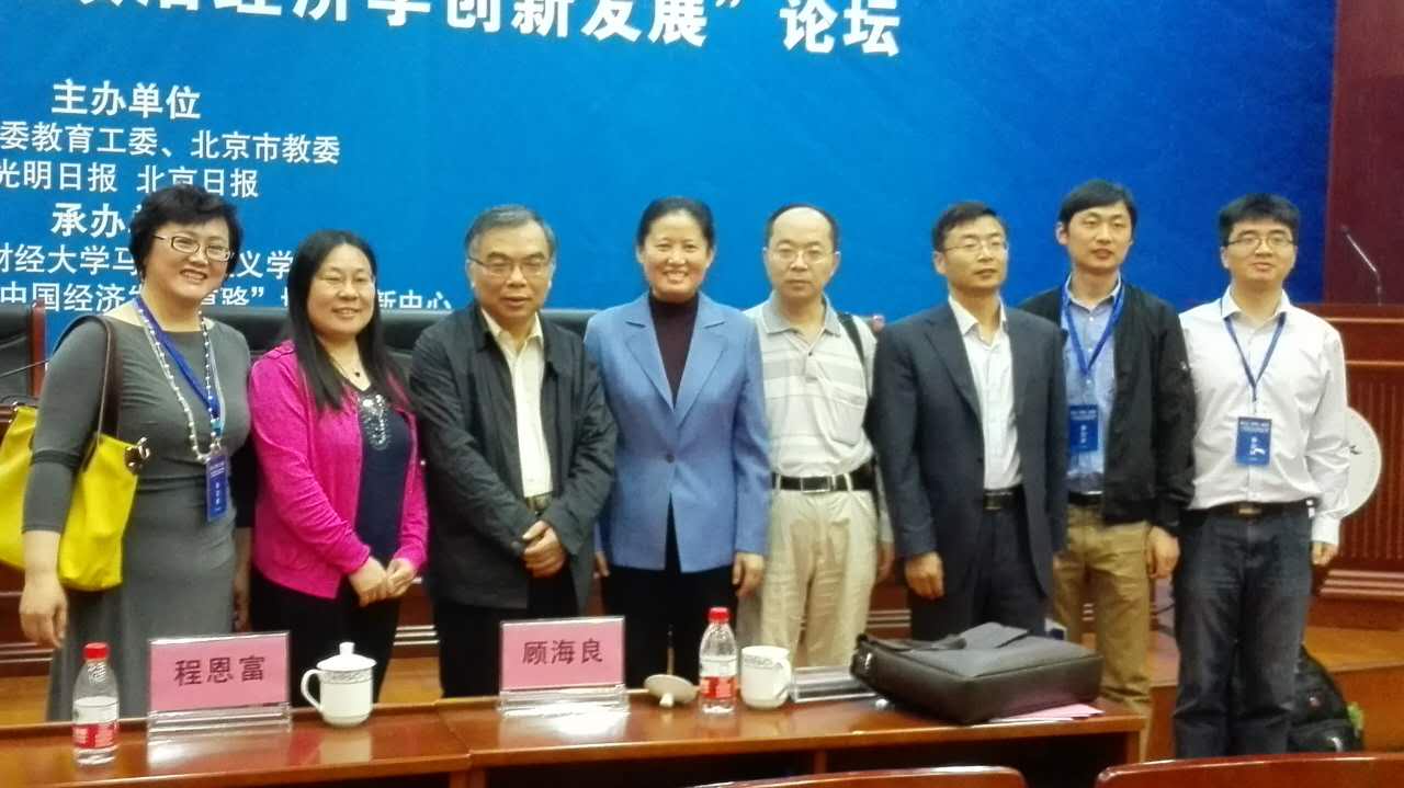5月6日,365英国官网政治经济学系齐兰老师、冯春安老师、林光彬老师、韩金华老师、张维闵老师、尹志锋老师、何召鹏老师参加了于我校举行的“北京高校中国特色社会主义理论体系研究协同创新中心授牌仪式暨中国特色社会主义政治经济学创新发展论坛”。在上午的专家主题报告环节,齐兰老师做了题为《新发展理念与中国经济及产业发展实践的新探索》的学术演讲;在下午举行的圆桌论坛上,林光彬老师做了题为《全球视野的中国政治经济学演进与创新发展》的学术演讲。两位老师的演讲内容详实,观点新颖,引起了与会师生的广泛共鸣。