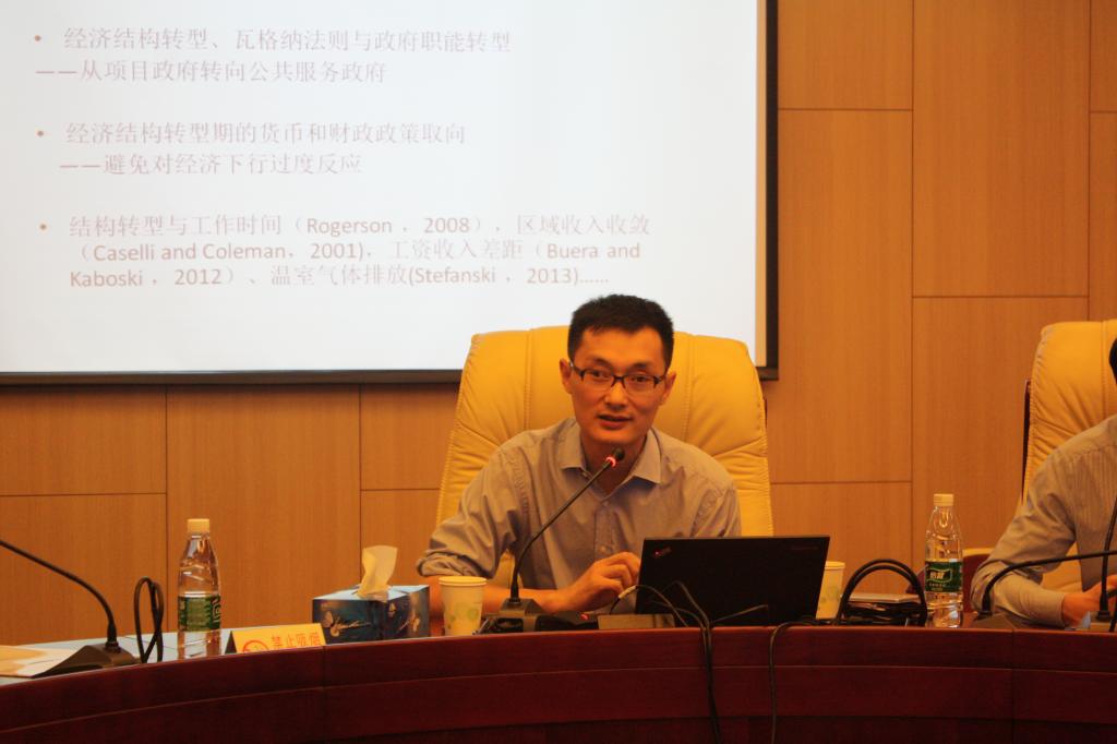 张斌老师首先对我国经济运行的新现象和新特征进行了简要的概述,并从人口红利递减、债务和外部经济周期、供求不匹配增加等角度对新现象进行了分析。之后,张斌老师讲解了经济结构转型的含义、标识、条件和理论解释,并以英美等国为例介绍了结构转型的国际经验。在此基础上,张老师继而探讨了中国是否迈入结构转型期这一问题,他提到,当前中国收入水平提高,进入后工业社会,工业增速下降,收入水平的提高一方面使得部分低附加值的产品逐步退出国际市场,另一方面,也使得对工业品的需求弹性下降,二者最终导致了工业增加值增速下降。之后,张老师分析了经济结构转型与中国经济下行问题,从需求上看,随收入增加,居民对工业品需求下降,对服务业、高附加值工业品、民生基础设施需求提高;从供给看,医疗、教育、城市公共服务、民生基础设施供给难以跟上,由此导致了严重的供需失衡,并最终造成了经济下行压力。而供给不足的原因是政府职能的错位与缺失,包括可能存在的过度管制、管制扭曲、金融体系不匹配、土地、劳动力等要素市场扭曲等问题。最后,张老师简要讲解了“经济结构转型是否影响经济增速”、“经济结构转型与金融市场发展”、“经济结构转型、瓦格纳法则与政府职能转型”、“经济结构转型期的货币和财政政策取向”等经济结构转型相关的研究问题。