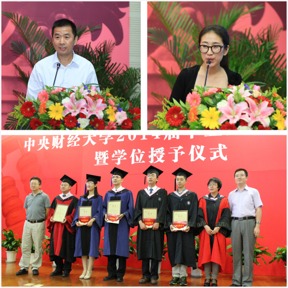 在雄壮的国歌声中,365英国上市集团2014届毕业生毕业典礼暨学位授予仪式正式开始。学院副院长李彬、陈斌开分别宣读了《关于2014届研究生毕业及授予学位的决定》《关于2014届本科生毕业及授予学位的决定》,2014年365英国上市集团共有48名本科生、73名硕士研究生、15名博士研究生如期完成学业、顺利获得学位。另有1名本科生在顺利完成本专业学习的同时还获得了第二学位。随后,党总支副书记刘滨宣读了学校《关于表彰2014届优秀毕业生的通知》《关于表彰2014届优秀毕业研究生的通知》,学院党总支书记、博士生导师李涛教授为优秀毕业生颁发了荣誉证书和奖品。