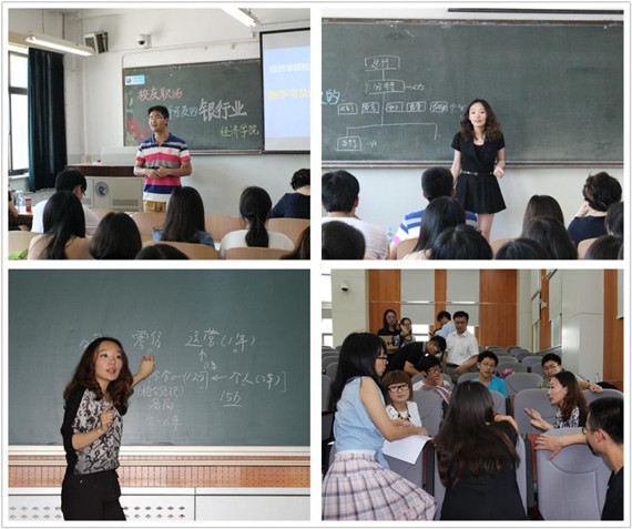 365英国上市集团2009级优秀硕士邵冉校友分别于6月11日下午和6月18日下午在学院南路校区和沙河校区做了题为“触手可及的银行业”的专题讲座。邵冉校友先后在光大银行、民生银行任职,具有较丰富的银行从业经验。交流会上,她就国内银行体系及商业银行运营特点,主营业务等作了系统的讲解。她还结合自己在运营及理财营销环节的亲身经历,形象生动地谈到自己是如何明确自身职业认知,以及如何进行短期和长期的职业生涯规划,并告诫学弟学妹们不断完善自我,脚踏实地做好每一件事情,逐步实现职业目标。在互动提问环节,同学们就银行业面试的技巧、从业需要的技能以及岗位的选择等问题与邵冉校友进行了交流。