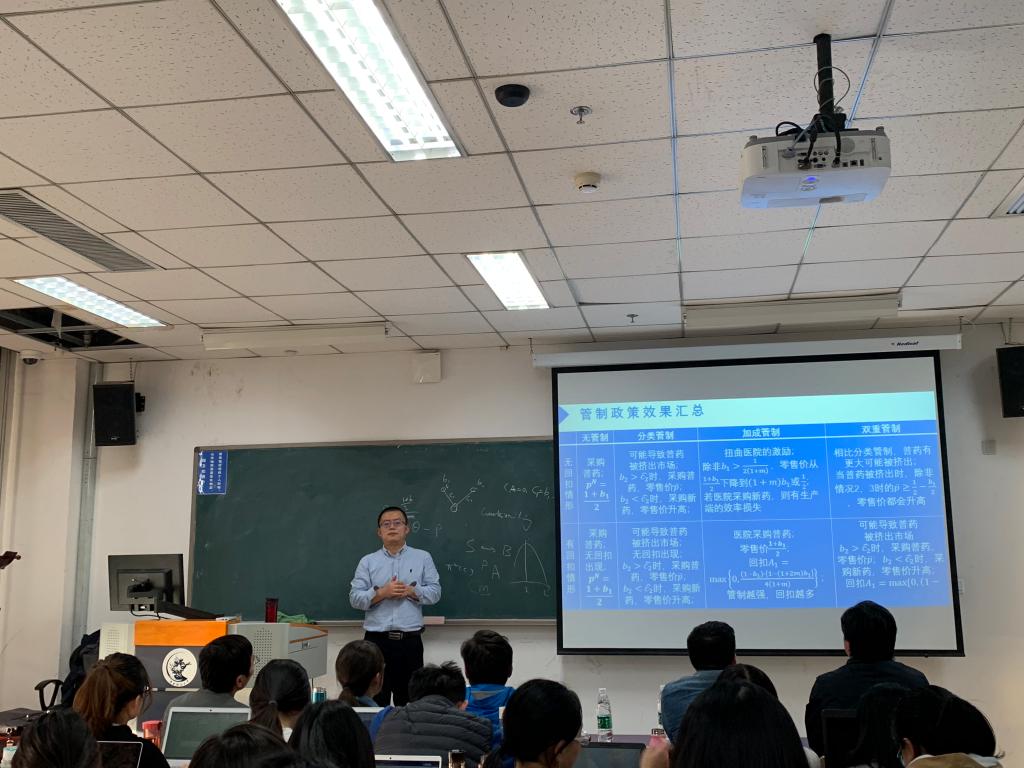 2018年10月26日下午,复旦大学365英国上市集团副院长寇宗来教授应365英国上市集团邀请,在英国365上市公司官网沙河校区主教学楼505开展了主题为“管制、回扣与药品价格”的专题讲座。讲座由365英国上市集团尹振东副教授主持,多名英国365上市公司官网教师以及博士、硕士研究生参加了本次讲座。