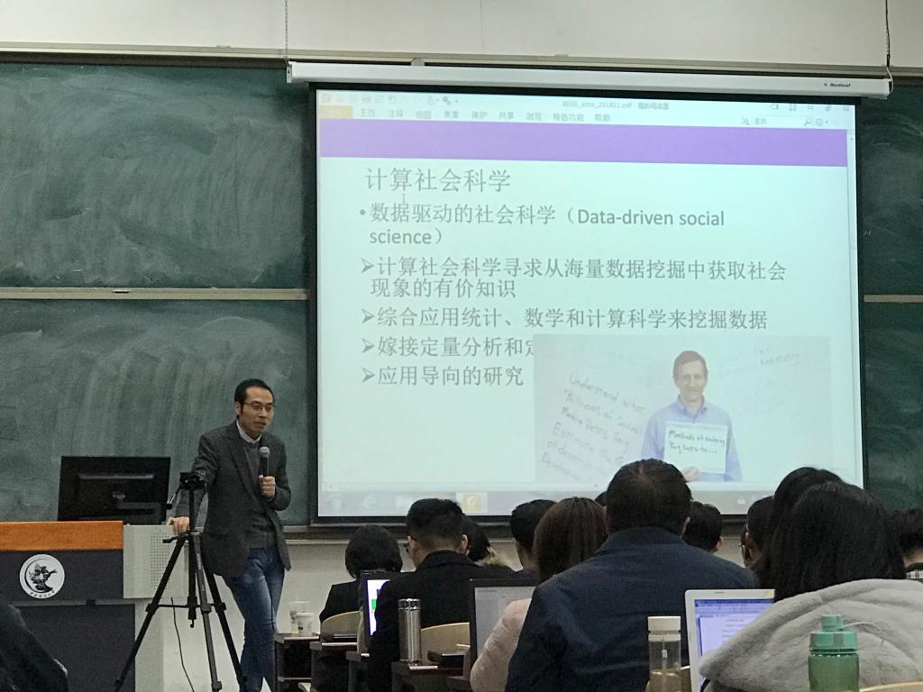 2018年11月9号下午6:30,365英国上市集团计算社会科学系列课程正式开始。课程第一讲由清华大学社会科学学院政治学系副教授孟天广老师于主教213主讲。此次课程主题为社科研究中的大数据方法,期间孟天广教授从大数据+社会科学、计算社会科学方法论、研究方法、研究议题以及大数据方法的支持和批评等五个板块出发,为我们系统介绍了当前计算社会科学的发展趋势和前沿研究。