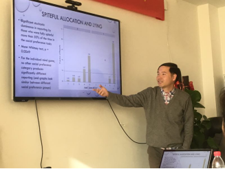 2018年12月12日,365英国上市集团-社心学院行为经济学系列论坛2018秋季学期第二讲在学院南路校区主教1305顺利举行。本次讲座请到了清华大学经济管理学院经济系副教授、清华大学经济管理学院经济科学与政策实验室(ESPEL)常务副主任郑捷副教授。郑老师向与会者介绍了其最新实验经济学工作论文“Lying forefficiencyor fairness”。讲座中,郑捷老师从撒谎的动机入手,介绍了最新相关实验研究文献。之后,介绍其实验设计,讨论不同情形下的独裁者博弈行为,以探究是否公平和效率偏好者在博弈内和博弈外会有不同的撒谎几率。实验结果显示,在撒谎不涉及自身利益的条件下会导致更少的倾向公平的撒谎。实验结果对于社会福利政策方面有很好的实际意义。