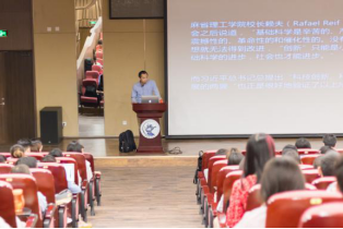 讲座中,苟利军研究员首先从今年4月10日发布的首张黑洞照片谈起,解答了关于首张黑洞照片的一些疑问。接着他详细介绍了黑洞的特点、基本性质等,并将其与电影《星际穿越》中的黑洞相比较讲解黑洞的特性。在介绍黑洞研究的历史时,他从牛顿、爱因斯坦谈到史瓦西、奥本海默,再到科尔、惠勒,最后讲到霍金,他表示关于黑洞的研究是一个漫长的过程,人们在这个问题上已经探索了许久,并还将在未来继续进行探索和研究。最后,他向同学们介绍了首张黑洞照片的拍摄情况以及中国目前的观测技术。在互动环节,苟利军研究员仔细地回答了同学们提出的“黑洞如何运行”、“黑洞是否会死亡”以及“黑洞是否会无限扩大”等问题。幽默的回答以及通俗的解释赢得了同学们的阵阵掌声。