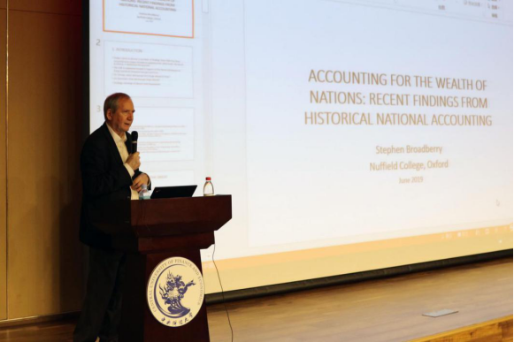 Broadberry教授现任教于牛津大学纳菲尔德学院,从事经济史和长期经济发展的研究,是国际历史GDP核算与比较的项目的负责人,在过去十年中,Stephen Broadberry联合世界主要国家的经济史研究者,以更可靠的各国历史数据和以现代经济学理论为基础的历史国民收入核算方法(Historical NationalAccouting),对历史上各国的国民收入进行了重新估计,鉴于其在该领域的突出贡献,2016年获授英国科学院院士。Broadberry教授此行中国的主要工作之一,就是发布其与合作者关于中国历史GDP核算的相关数据。Broadberry教授曾先后任职于LSE、Warwick和牛津大学等著名学府,在加州大学伯克利分校、德国洪堡大学、一桥大学等学校兼任教职。曾担任经济史领域顶级期刊《Economic HistoryReview》和《European Review ofEconomic History》的主编。
