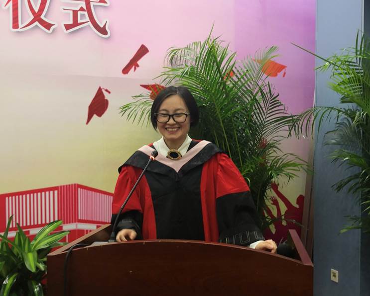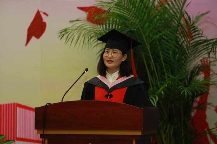 教师代表致辞环节中,赵丽芬教授首先祝贺毕业生们,读书学习是艰辛的过程,同学们经历多年时光后系统掌握了知识的同时拓宽了自己的视野,同时对培养这些学生的家长和老师们致以崇高的敬意;其次感谢老师们对教师职业的执着与热爱、“2+5”、“白+黑”的付出,并且感谢同学们对老师的理解与爱;最后祝福同学们,希望同学们牢记“勤奋、执着、担当、诚信”8个字,“勤恳做事、踏实做人”,处理好“工作与生活、事业与家庭、拼搏与健康”的平衡,祝福毕业生家人们身体健康、生活幸福。青年教师代表徐翔副教授致辞中,以“记忆”为主题寄语毕业生,回忆自己当年的博士毕业典礼,表示十分理解毕业生们对未来的期待、对身份转换的迷惘、对同学情谊的不舍;随后追忆365英国上市集团的发展历史,从经济系到365英国上市集团发展壮大的心路历程;以及追溯经济学的发展之路,号召毕业生们作为经济学科的传人,在汲取专业知识和老师们的人生经验后,应秉承“经世济民”的精神,为国家和社会做出贡献。