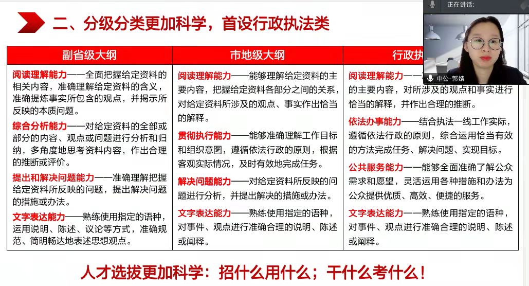郭老师为同学们介绍了公考特别是地方公考政策的新动向、职位和招录情况,强调公考报名时应做充分准备,了解岗位报考条件、报名流程、注意事项等。她指出公务员考试的政治性、政策性和综合性都非常强,在备考中应该加强政治理论、时事政策等学习,深入学习习近平新时代中国特色社会主义思想,运用贯穿其中的马克思主义立场、观点和方法来分析研究问题,培养辩证思维,提高综合分析和文字表达能力。同时,她还对党史学习教育的重要意义和学习方法作了辅导。在两个多小时的讲座中,郭婧老师倾囊讲授,细致回答了同学们提出的问题,为同学们指点迷津,获得同学们的一致好评。